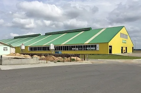 Специально для телятников разработана аналогичная конструкция шириной 28,8 м. Кроме того, при строительстве комплексов для КРС используются практически все типоразмеры зданий Spider® (с пролетами 6, 12, 18, 21 и 24 м) под галереи, молочные отделения, сенохранилища и др.