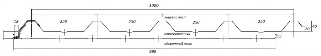 Кровельные сэндвич-панели с PIR сердечником производятся шириной 1000мм.