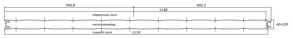 Стеновые сэндвич-панели с PIR сердечником производятся шириной 1150 мм и 1000 мм.