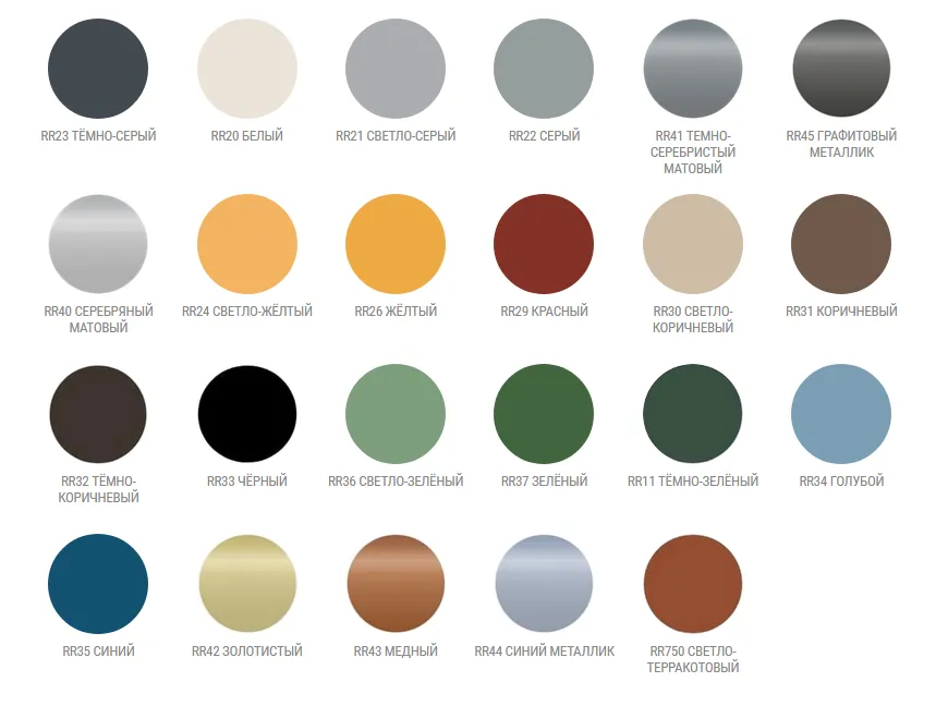 | Стандартная | HIARC и Порошковая краска | RR11, RR22, RR24, RR26, RR29, RR30, RR31, RR32,RR33, RR34, RR35, RR36, RR37, RR44, RR45, RR750 |