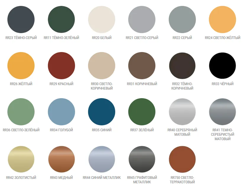 | Стандартная | HIARC и Порошковая краска | RR11, RR22, RR24, RR26, RR29, RR30, RR31, RR32,RR33, RR34, RR35, RR36, RR37, RR44, RR45, RR750 |