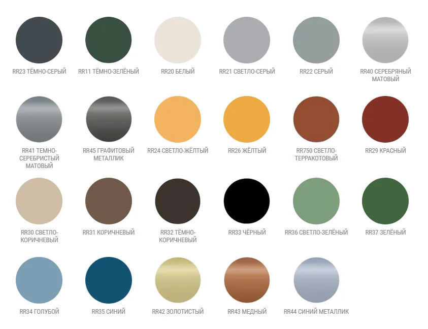 | Стандартная | HIARC и Порошковая краска | RR11, RR22, RR24, RR26, RR29, RR30, RR31, RR32,RR33, RR34, RR35, RR36, RR37, RR44, RR45, RR750 |