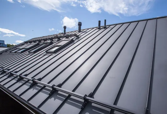 Компания RUUKKI производит фальцевую кровлю, имеющую классическую прямолинейную форму со скрытым видом крепления. Благодаря самозащелкивающемуся креплению, листы фальцевой кровли стыкуются между собой надежно и герметично. Этот вид кровельного материала как нельзя лучше подходит для реставрации исторических сооружений и зданий, имеющих архитектурную ценность, а также успешно используется при проведении кровельных работ на объектах, имеющих небольшой угол уклона крыши (в частности 1:7). Для примерного сравнения: при использовании металлочерепицы в качестве кровельного материала, уклон должен составлять как минимум 1:4. Также, большой популярностью фальцевая кровля пользуется при новом строительстве, где дизайн дома выполнен в классическом стиле.