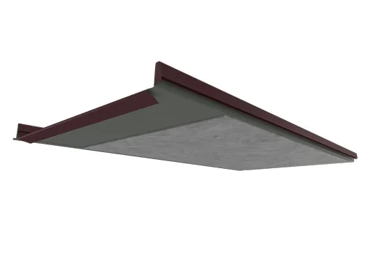 - Антиконденсат. Уплотнители, находящиеся в гребне профиля, делают шов 100% водонепроницаемым. Дизайн профиля и доборные элементы защищают от потоков дождевой воды карнизные конструкции. Скрытые крепления. Кровля Руукки Сайленс Silence работает как антиконденсатный материал.